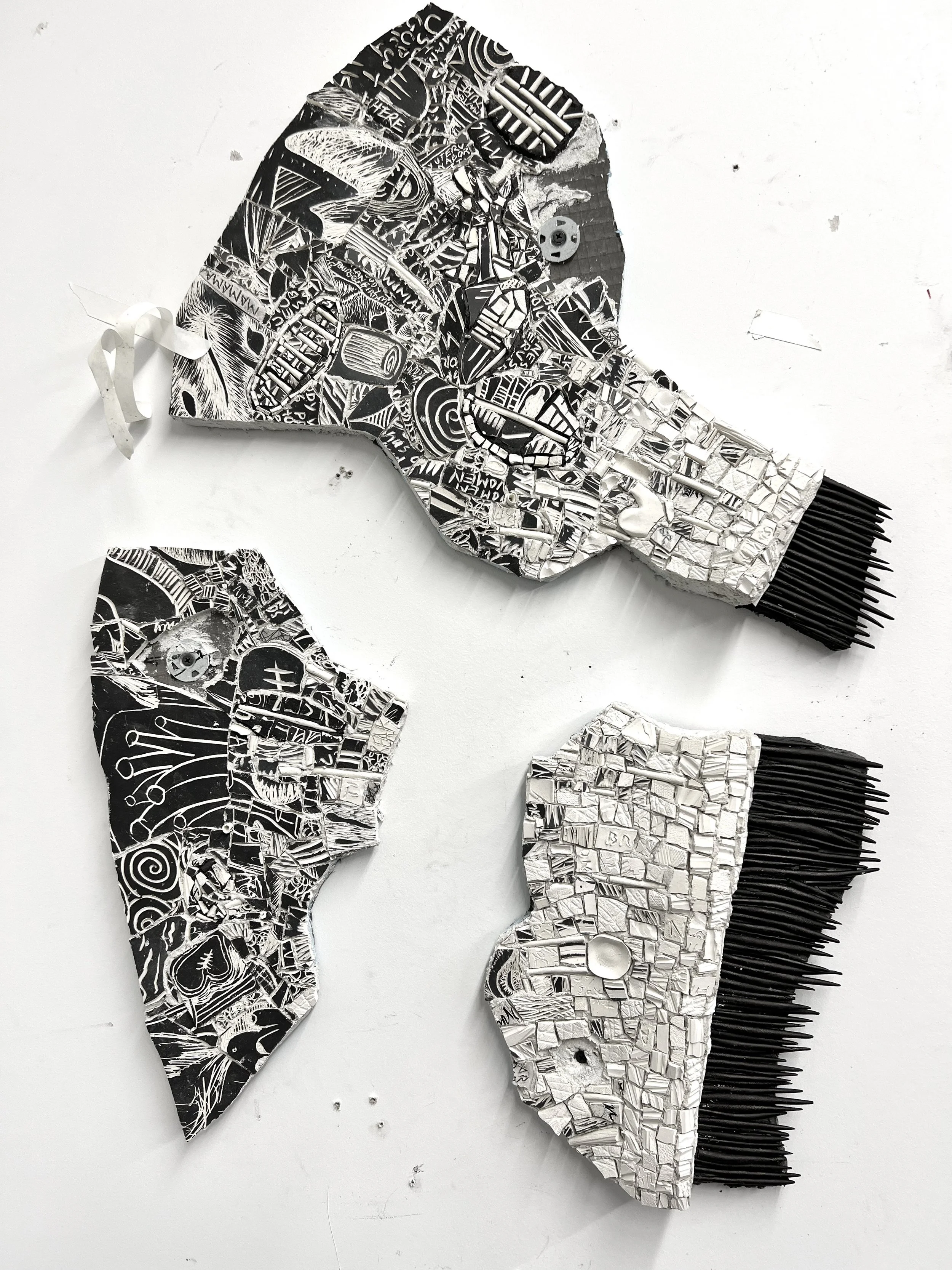 Mosaic, as a contemporary art medium, plays a large part in my intersectional art practice, which is a literal ‘mosaic’ of art methodologies, which I use to explore memory and trauma, maternalism and birth politics in works of sculptural, graphic and visual personal narratives. In my studio practice I use mosaic as a part of a formal language which alludes to brokenness and reinvention. How can a mosaic aesthetic apply to feminist discourses on maternal identity and maternal repair?